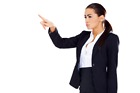 Business woman pointing at empty space over white backgroung