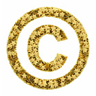 Copyright sign composed of golden stars isolated on white. High resolution 3D image