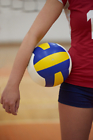 volleyball game sport with group of young beautiful girls indoor in sport arena school gym