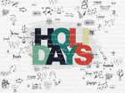 Holiday concept: Painted multicolor text Holidays on White Brick wall background with Scheme Of Hand Drawn Holiday Icons